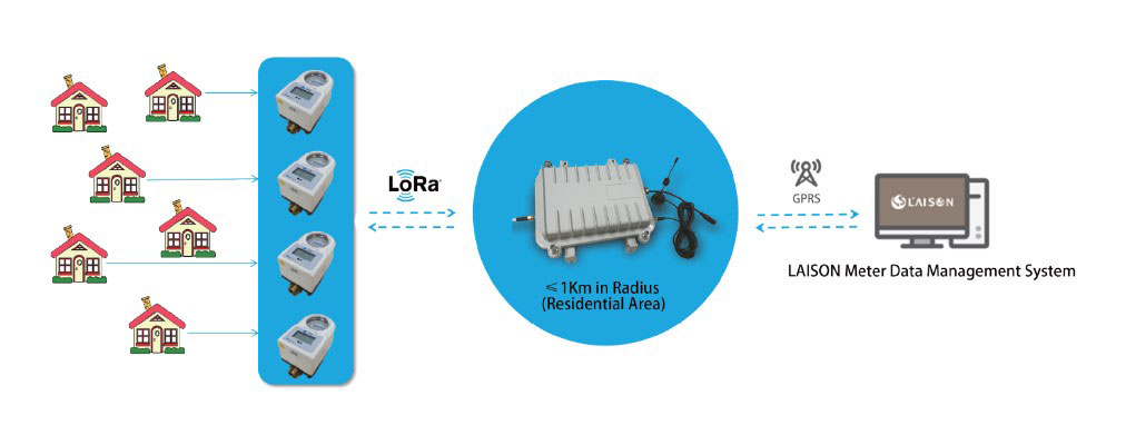 The Data Concentrator Unit (DCU) could communicate with meter via LoRa RF Wireless Com. and the MDM system via GPRS, thus the Meters' data could be uploaded to Center System automatically everyday, for Customer Monitor, Consumption Data Analyzing, Possible Leakage and Tamper Situation Detection etc.
